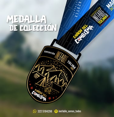 Representa una transformación. Su diseño nace de la fuerza imponente del Cañón del Combeima, con relieves que evocan las montañas profundas del Tolima y las líneas firmes del ascenso que desafía cuerpo y espíritu. En el centro, el símbolo INEFABLE se alza como recordatorio de que esta hermandad no se mide en kilómetros, sino en determinación.
