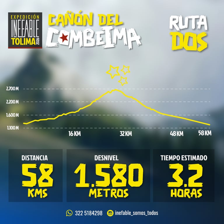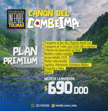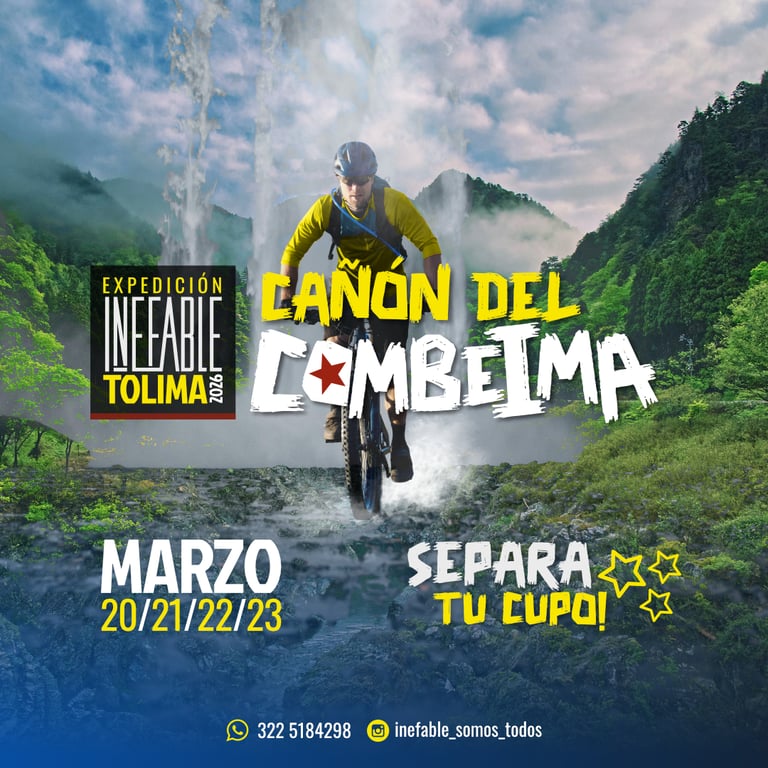 En marzo de 2026, los INEFABLES regresan a su esencia: descubrir Colombia en bicicleta. Esta vez el destino es el majestuoso Cañón del Combeima, un santuario natural ubicado en el corazón del Tolima, donde la montaña impone respeto y cada pedalazo se convierte en una conquista personal. Serán cuatro días de aventura, compañerismo y desafío, explorando uno de los paisajes más imponentes de la cordillera central colombiana.